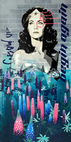 Unique painting of acrylic and spray paint on boxed wooden board