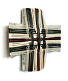 Rescued iron woven with waxed cord, fishing line and mercerised thread