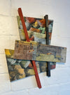 Pacific Voyages #1Mixed media collage on plywood, stained pine and jute lashing780 mm W x 930 mm H x 70 mm D